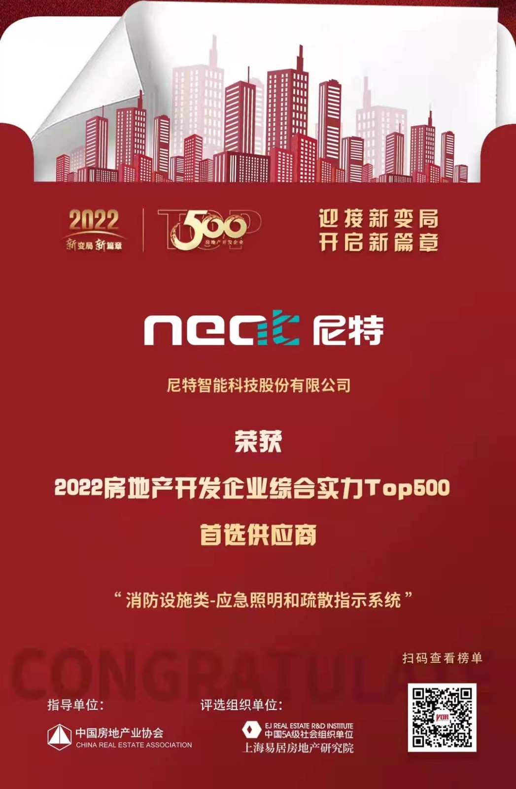 恭喜尼特連續(xù)五年獲評500強地產(chǎn)首選供應(yīng)商殊榮!!智能疏散品類位列榜首!!!